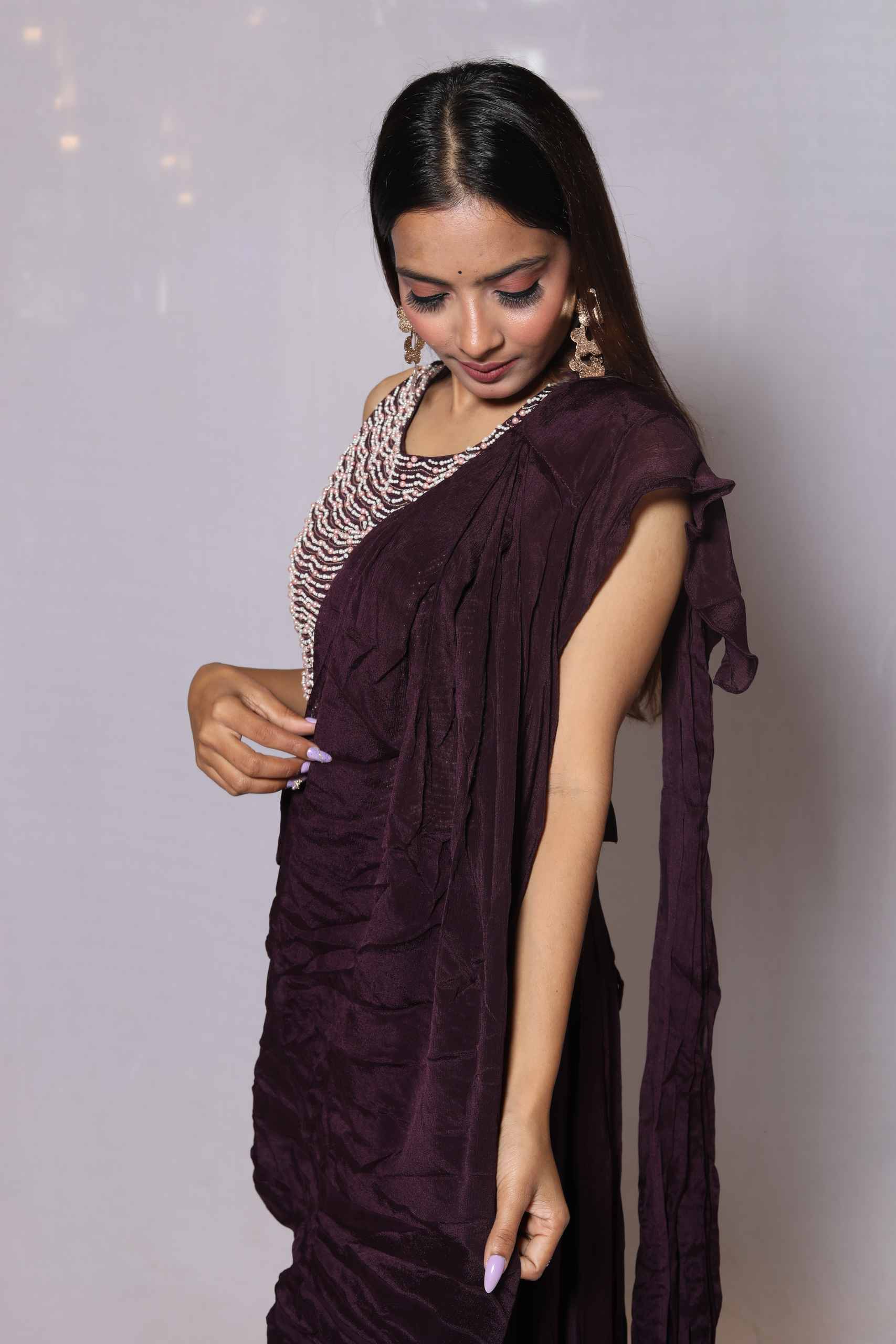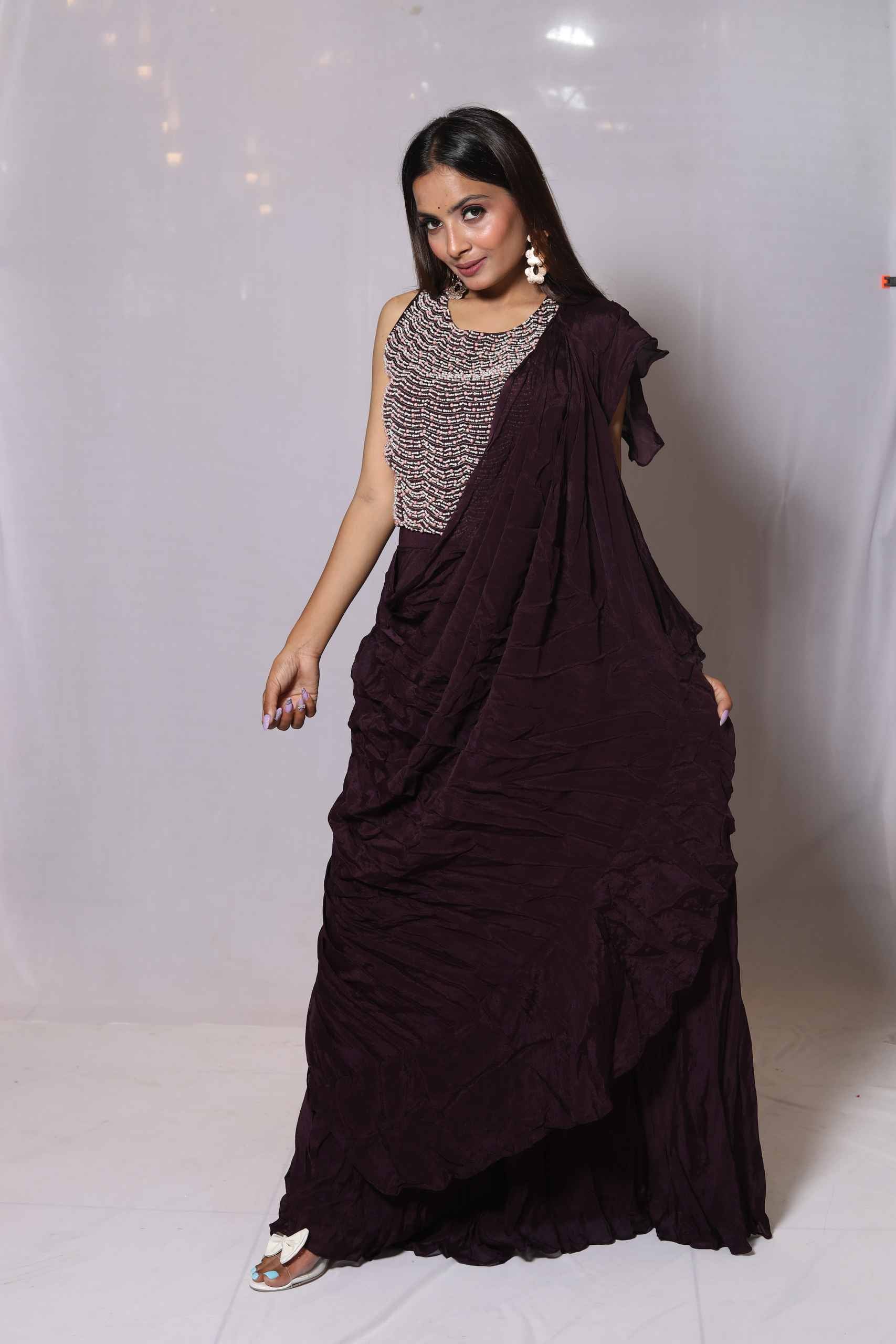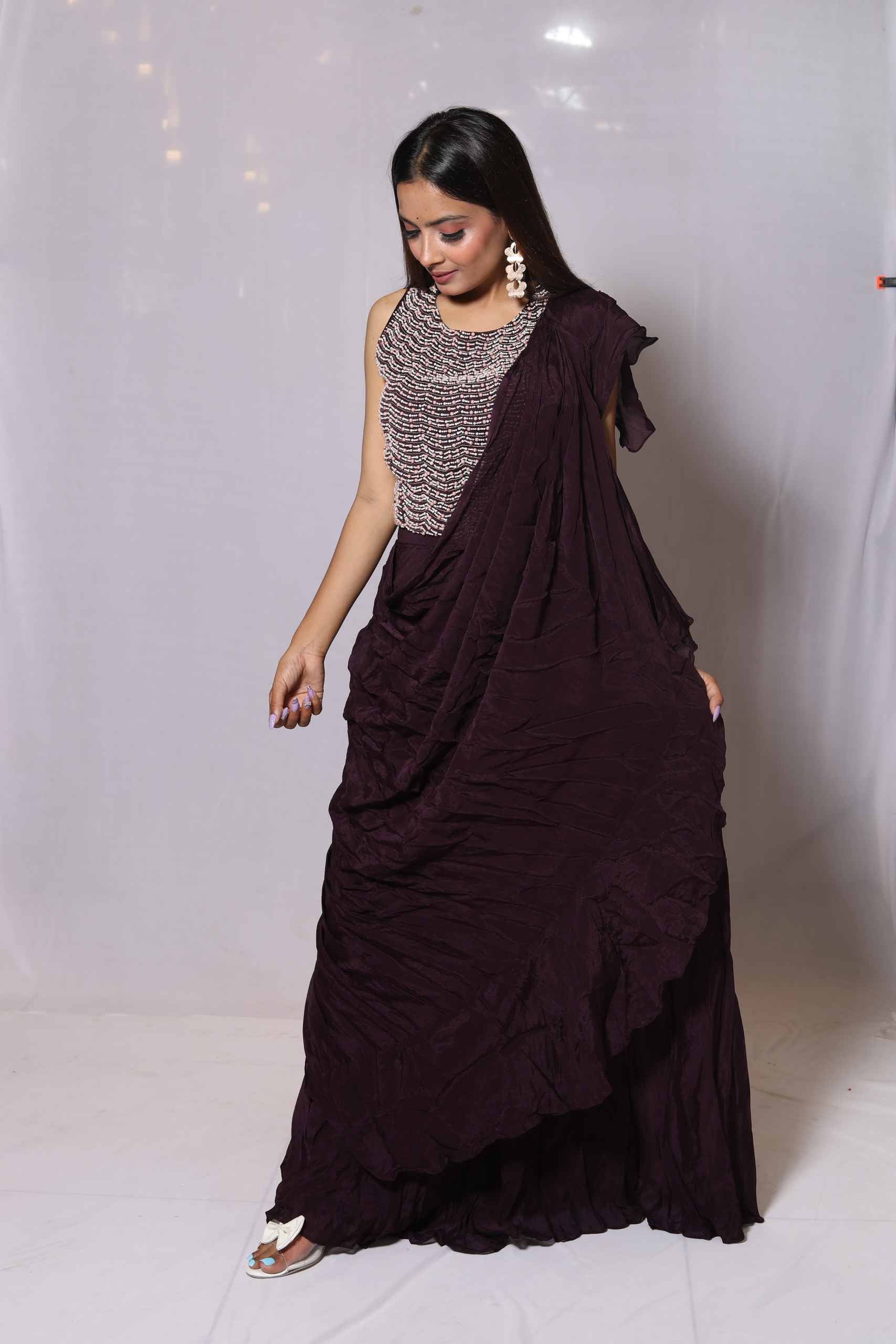 Chinnon Skirt With Saree Look With Blouse